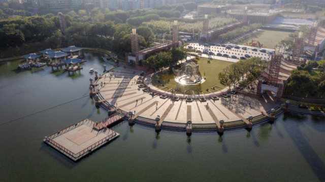 当把一件人们熟知的事物放大到常规不可认知的程度的时候,其当代性的穿透力是显而易见。如同芝加哥广场上的被放大无数倍的蚕豆一样,这时,狮头已经不再是狮头,而是成为了城市的符号和精神象征,与桂城千灯湖中央活力区相融合。