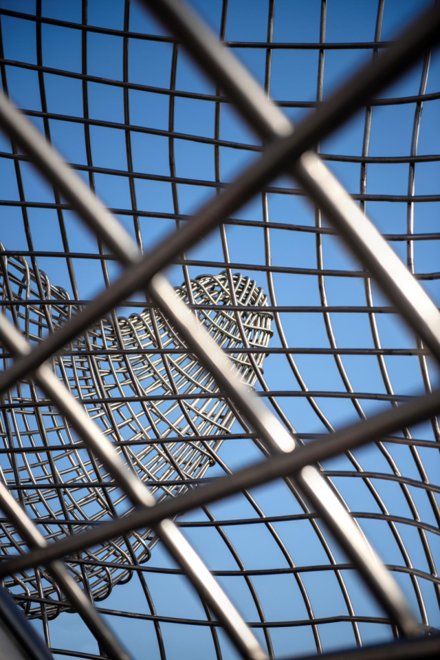 “醒”的创作原动力源于对岭南狮头文化的演绎,通过对其筋骨和精神性的提炼,用当代的不锈钢材料和通透的视觉效果,展现了一个不同寻常的狮头形象。