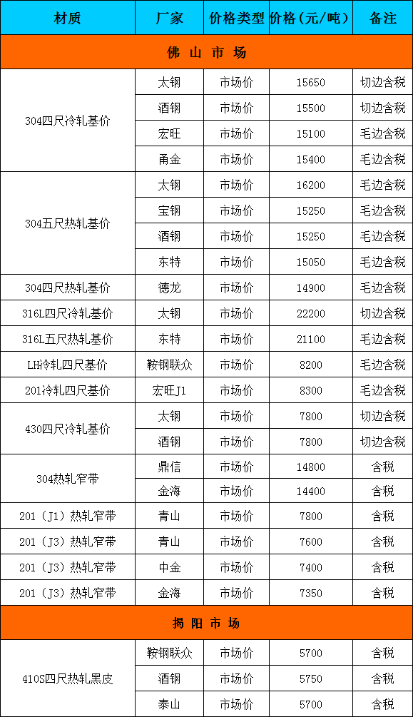 7月23日广东市场不锈钢卷主流参考报价