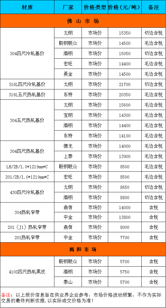 5月14日广东市场不锈钢卷主流参考价格